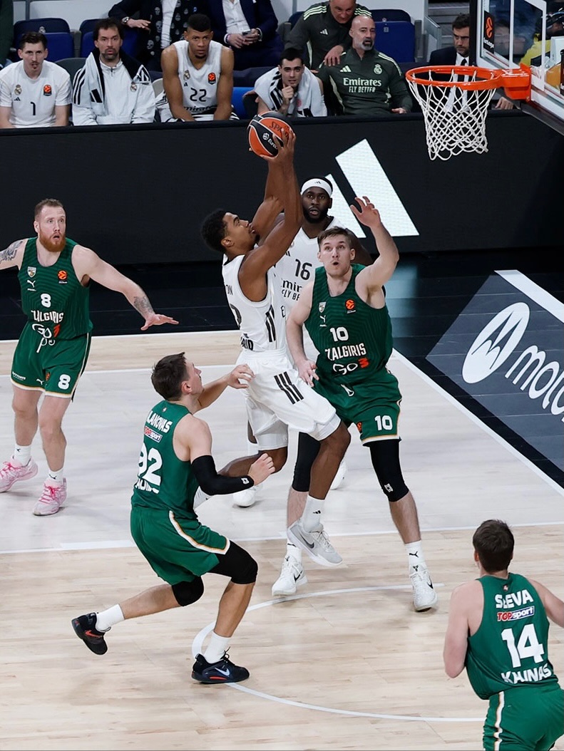 Ce jeudi soir à la Movistar ARENA, Le Real Madrid a arraché une victoire étouffante face au Zalgiris (100-99), grâce à un dernier quart complètement fou remporté 38-37. Les attaques ont pris le dessus sur les défenses dans un duel à haute tension. Au cœur de ce duel de l’année, deux meneurs français : Théo Maledon et Sylvain Francisco. Ce premier a réalisé une performance digne de son talent. Le meneur madrilène a compilé une ligne de stats grandiose avec 25 points, 5 passes décisives et 7 fautes provoquées pour 34 d’évaluation avec la victoire en prime. Cette performance réalisé en seulement 21 petites minutes montre l’efficacité du meneur tricolore. Agressif au cercle Maledon a réalisé un sans faute sur la ligne des lancers francs avec un joli 11/11.